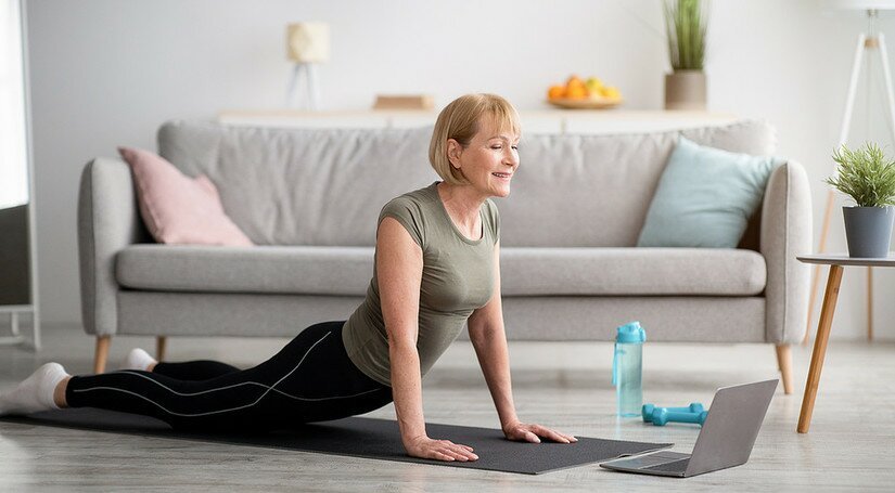 - Senam ringan atau yoga – Membantu meningkatkan fleksibilitas dan keseimbangan, serta membantu tubuh menjadi lebih rileks.
